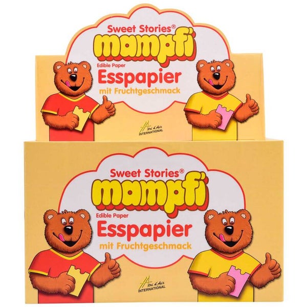 Papier is alleen om te schilderen? Maak je een grapje? Meen je dat serieus? Het mampfi fruit eetbaar papier bewijst dat het ook heel lekker kan zijn. Het kleurrijke eetbare papier geniet een echte cultstatus onder zoetekauwen. En omdat hij in een handomdraai is vermalen, zitten er 200 van de zoete wafels in dit praktische doosje met retro-look. Roze of blauw – de flinterdunne bladeren zijn ook ideaal voor het bakken en bereiden van desserts.
