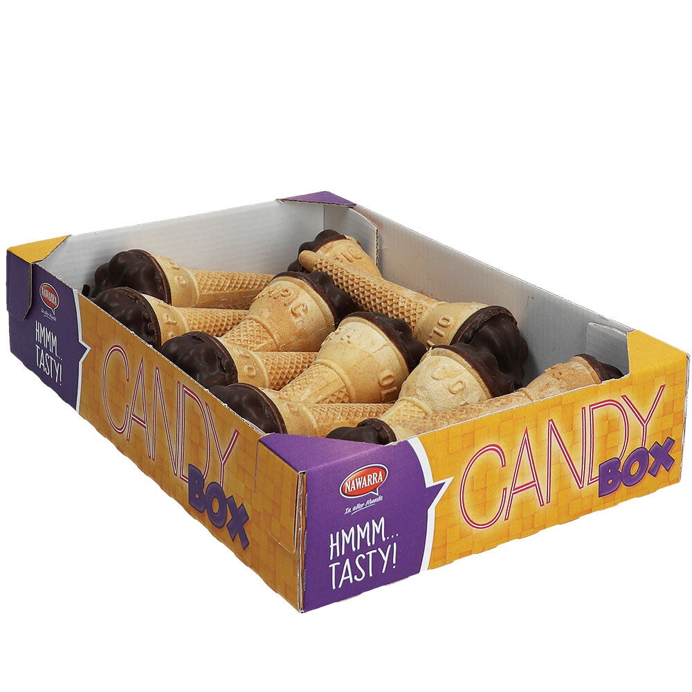 11 wafelhoorntjes met schuimsuikervulling en cacaoglazuur. Gelatinevrij.
