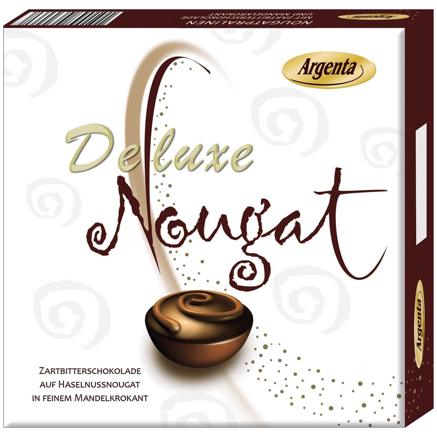 Behoorlijk stijlvol. Argenta Deluxe Nougat staat voor het hoogste nougatgenot - gecombineerd met knapperige amandelbrokjes, fijne pure chocolade en delicaat smeltende volle melkchocolade. Laat deze eersteklas creatie in je mond smelten en je verleiden om ervan te genieten.