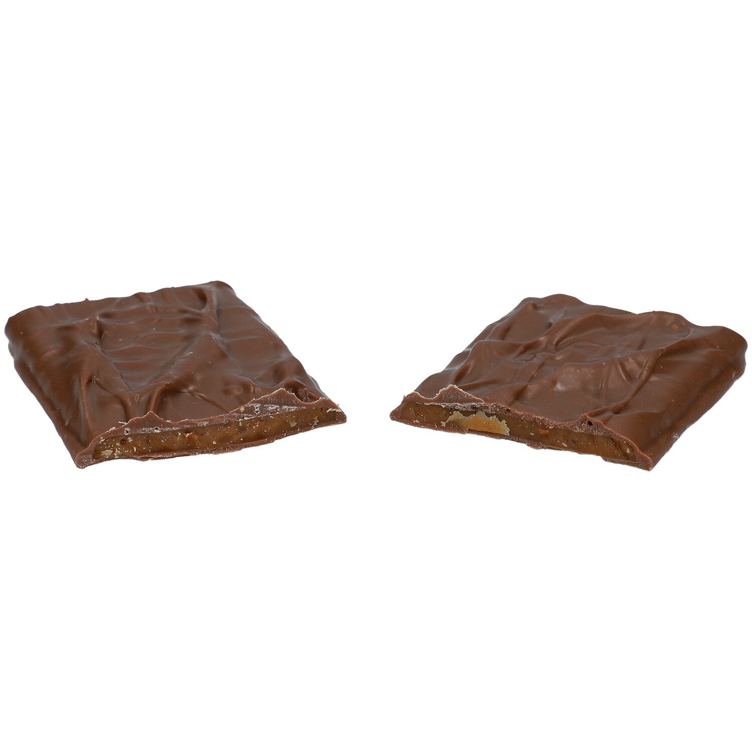 Gevulde melkchocolade (42%) met amandelkaramel