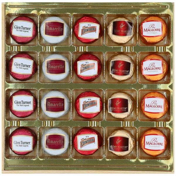 Elegant genieten in een stijlvolle verpakking. De fijne Duc d'O likeurpralines in de aantrekkelijke houten doos zijn een ideaal cadeau-idee voor alle kenners van echte likeurspecialiteiten. Geniet van een zorgvuldig geselecteerde selectie van de fijnste likeurpralines, die in hun knapperige chocoladeomhulsel een alcoholische specialiteit verbergen. De variëteiten Magloire Calvados, Rémy Martini, Amaretto en Glen Turner bieden een heerlijke variëteit voor bijzondere genietmomenten.