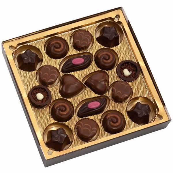- Fijnbittere Marc de Champagne-truffels: edele Marc de Champagne-truffels in een liefdevol versierde schelp van fijn bittere chocolade (bevat alcohol).