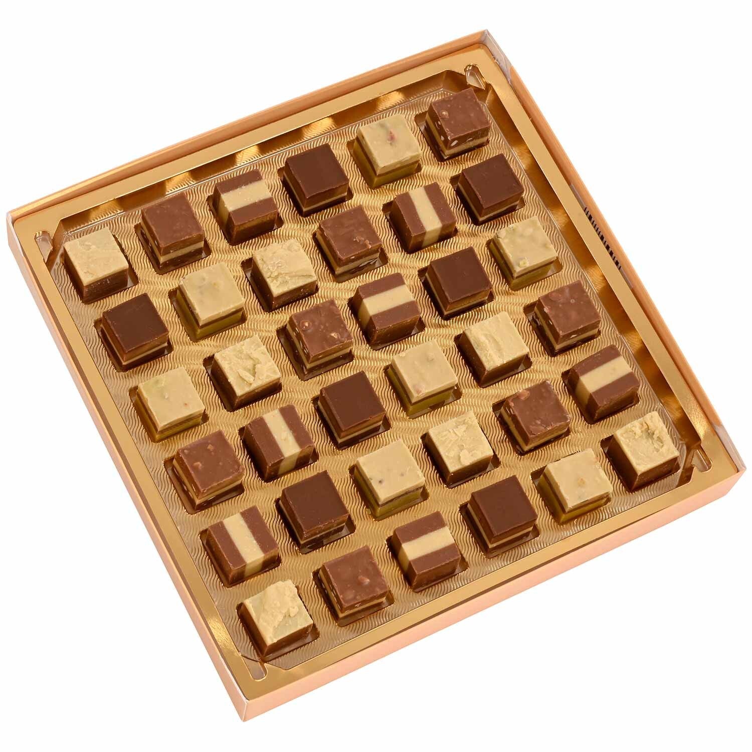 Geschenkverpakking met 36 handgelaagde mini pralines, 5 maal geassorteerd.