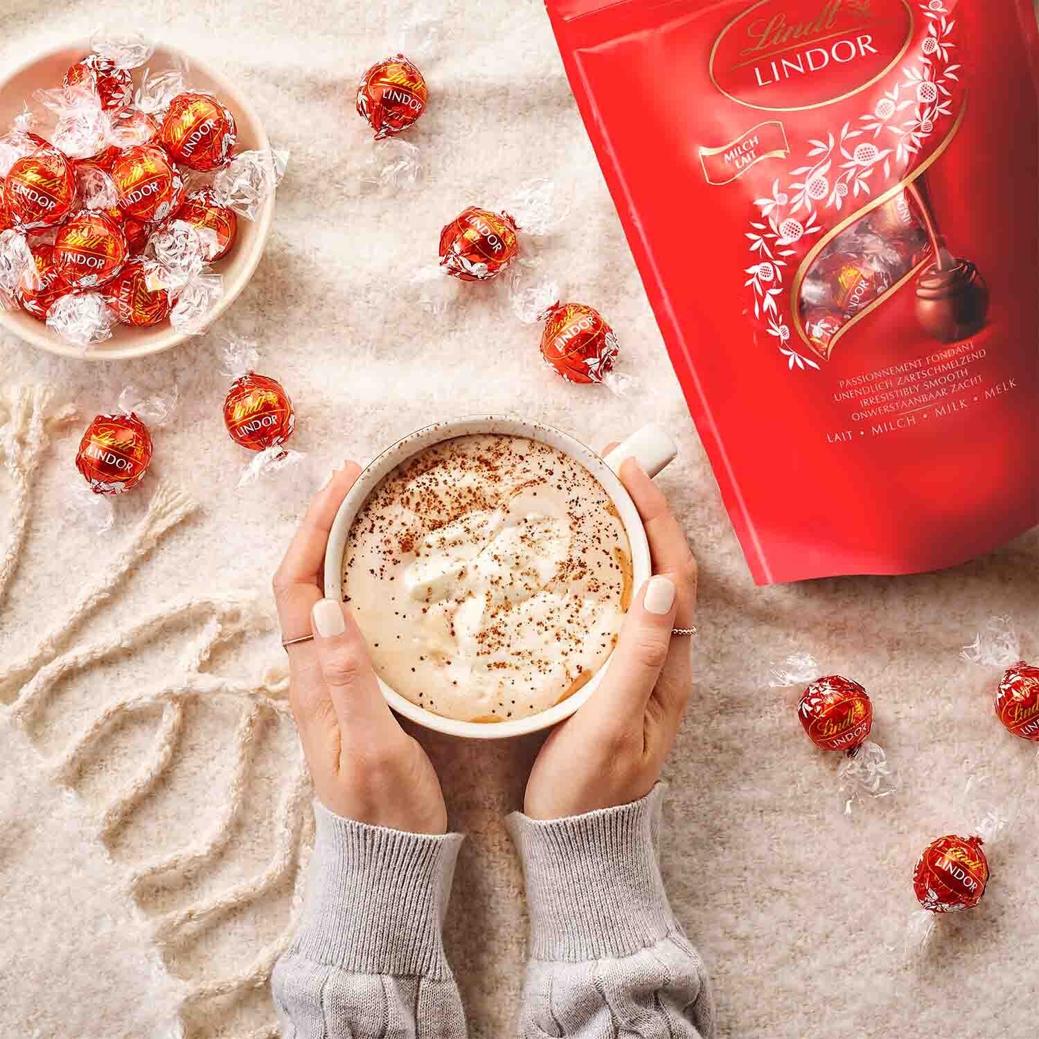 Geniet van een onvergetelijk moment met Lindt Lindor volle melkbolletjes die alleen van jou zijn: wanneer de fijne schaal van volle melkchocolade in je mond smelt en de eindeloos smeltende vulling zachtjes al je zintuigen raakt, neemt Lindor je mee naar een plek waar chocoladedromen werkelijkheid worden.