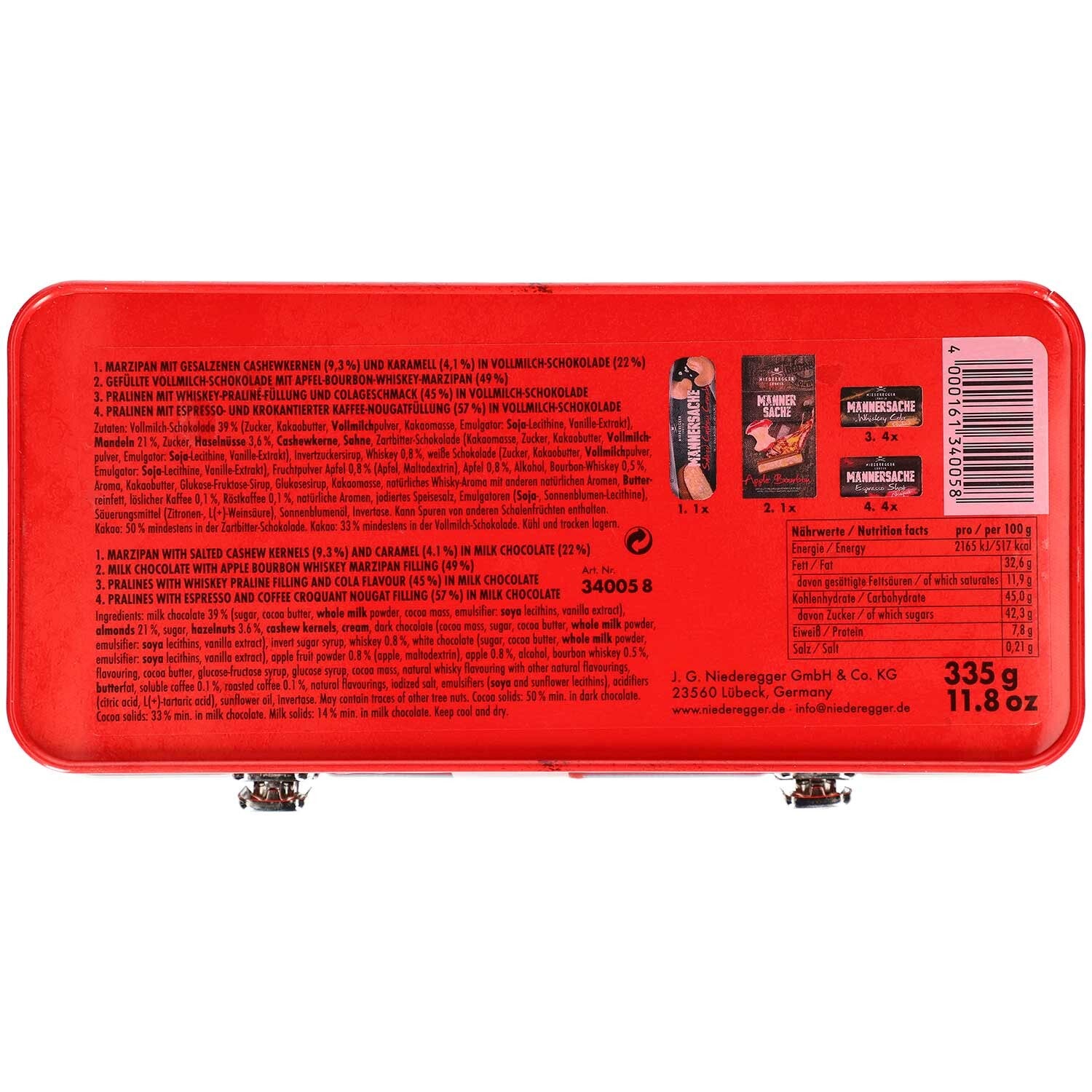 Aan dit genot hoeft niet meer te worden gesleuteld. De Niederegger Marsepeinen "Men's Thing" gereedschapskist is gevuld met heerlijke "apparaten" voor de smaakpapillen. De mix van heerlijk marsepeinenbrood met zoute cashewnoten en karamel onder fijne volle melkchocolade, de marsepeinenreep met appelstukjes en bourbonwhisky-smaak en de aromatische volle melkpralines met whisky-cola-truffel en espresso-shot is voor velen een ongewoon cadeau-idee. het-zelvers. Want de geschenkverpakking met de uitstraling van een gereedschapskist is een echte blikvanger en kan dankzij het handvat gemakkelijk worden getransporteerd - naar de ontvanger of voor snoepplezier onderweg.