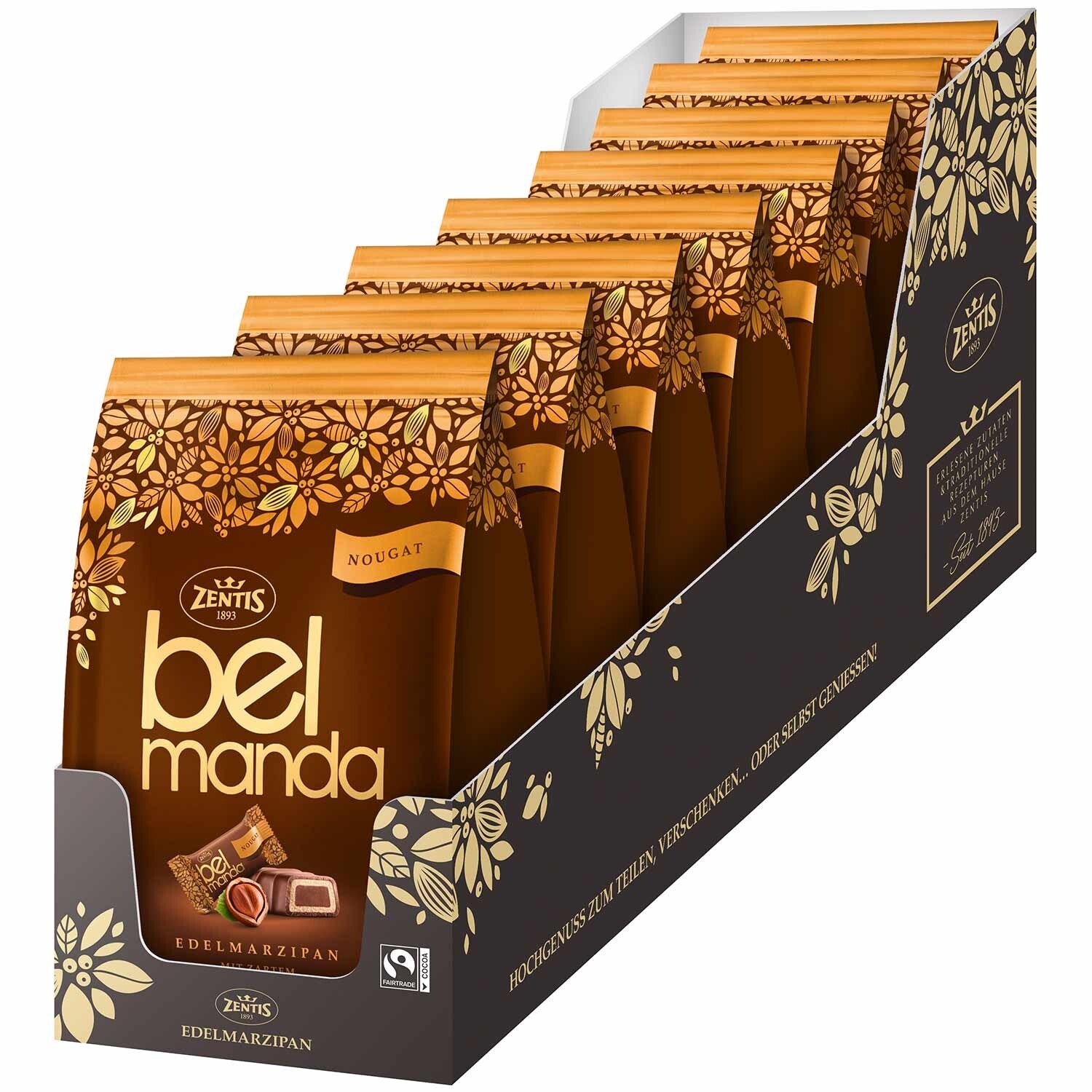 Een must voor kenners! Met Zentis Belmanda Nougat gaat er een nieuwe wereld van genieten voor je open. De heerlijke pralines zijn gemaakt van sappige premium marsepein, die een dikke nougatkern omsluit. De volle delicatessen zijn omhuld met de beste melkchocolade.