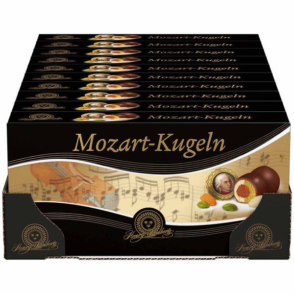 Een goed stukje traditie. Henry Lambertz Mozart balletjes zijn fijne chocoladepralines gevuld met fijne pistachemarsepein, marsepein en een notennougatcrème. Verfijnd met volle melkchocolade en omhuld met een fijn laagje pure chocolade, het resultaat is een typisch Oostenrijkse klassieker.