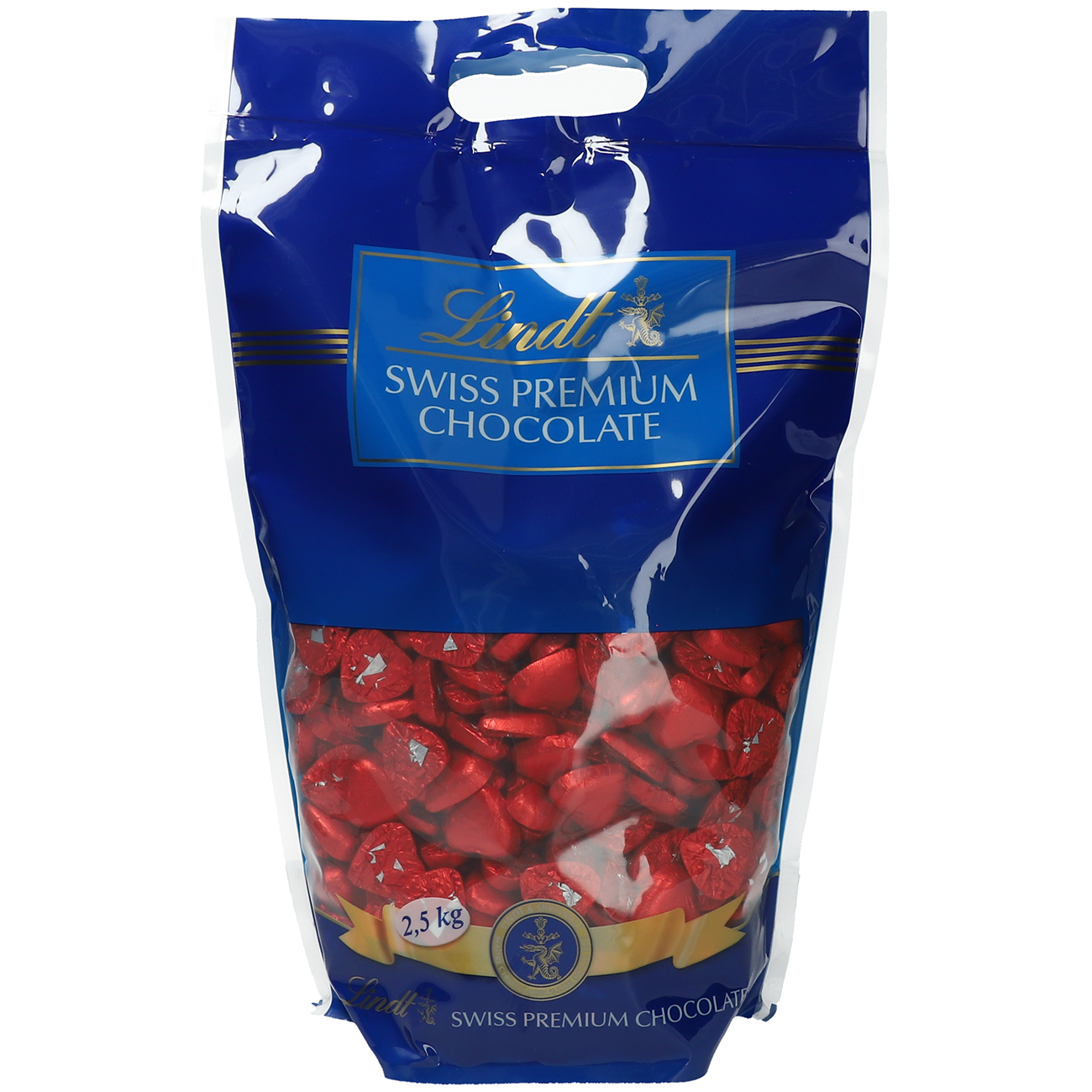 Individueel verpakte minihartjes (ca. 485 stuks) gemaakt van Zwitserse melkchocolade.