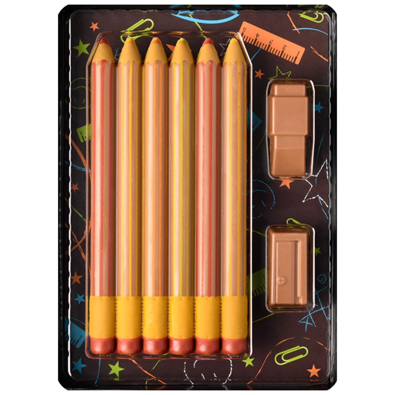 Teken je leven zoet. De heerlijke Weibler-tekenset bevat artistiek tekengerei gemaakt van de beste melkchocolade. Naast de 6 liefdevol vormgegeven kleurpotloden met kleurrijke decoratie vind je in deze doos een puntenslijper en een gum in heerlijke Weibler-kwaliteit. In de mooie geschenkverpakking met praktisch kijkvenster is deze lekkernij een uitstekend cadeau. Als zoete aanvulling op de schoolhoorn of als cadeau voor kleine en grote kunstenaars, zo'n mooie traktatie laat gegarandeerd een geweldige indruk achter.