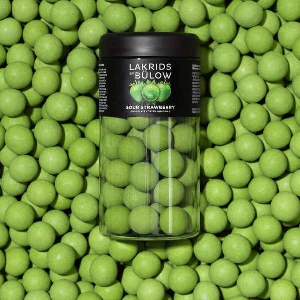 Lakrids by Bülow Sour Strawberry is een sprankelende creatie van Bülow. De heerlijke balletjes zijn omhuld met een knapperig suikerlaagje, waaronder zich een laagje witte chocolade bevindt. Deze werd verfijnd met een zure aardbeiennoot, die doet denken aan de zure en frisse smaak van groene aardbeien. Een zachte kern van drop vormt het contrasterende hart. Een bijzondere compositie die verfrissend anders is.