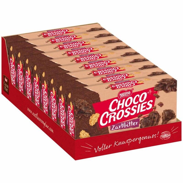 De duistere verleiding. Choco Crossies is perfect voor iedereen die van de sterke smaak van cacao houdt. De knapperige pralines met heerlijke cornflakes zijn rijkelijk omhuld met pure chocolade en nodigen uit tot intens snacken op elk gewenst moment.