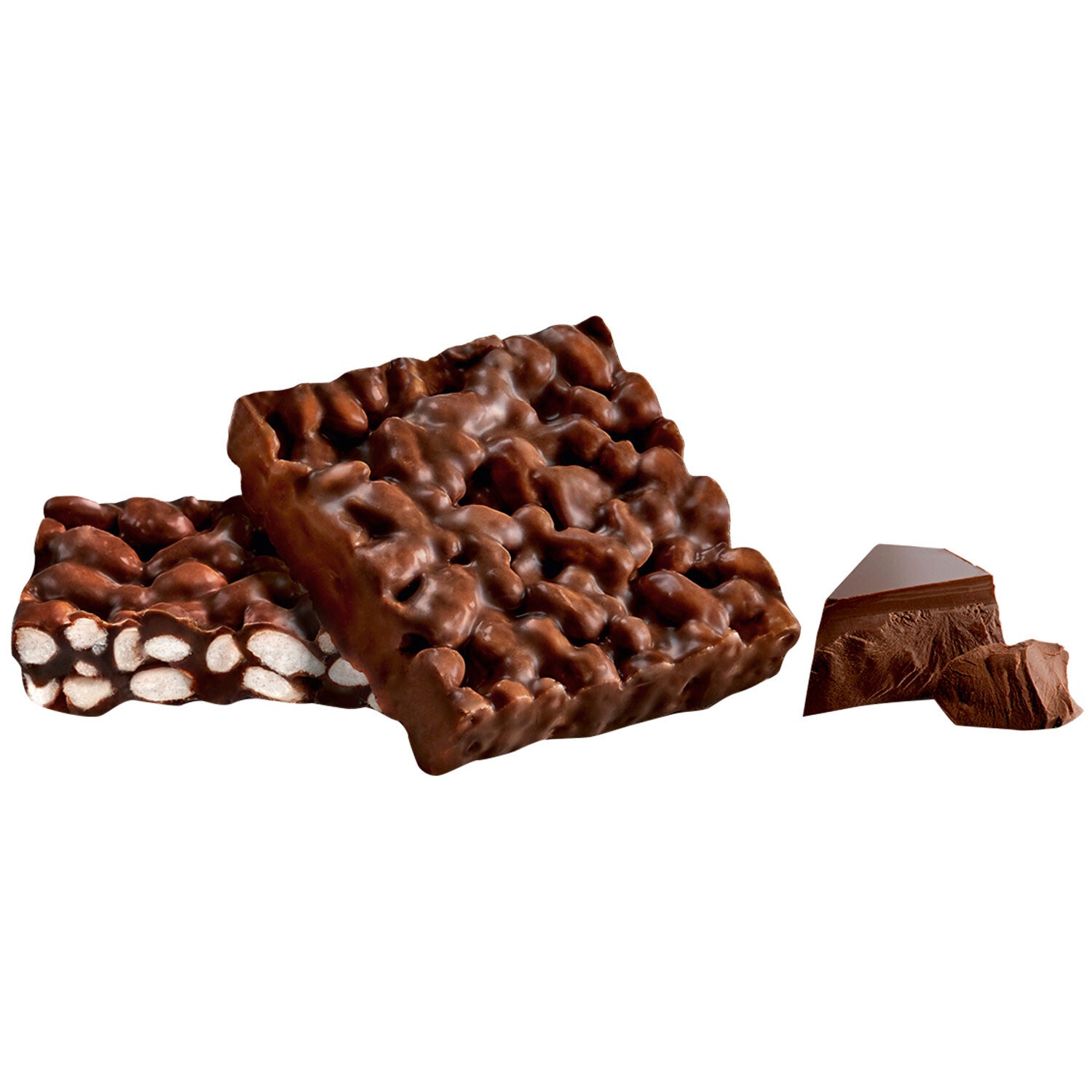 Gepofte rijst (11%) en granen (10%) in cacaocrème (48%) omhuld met pure chocolade (32%).