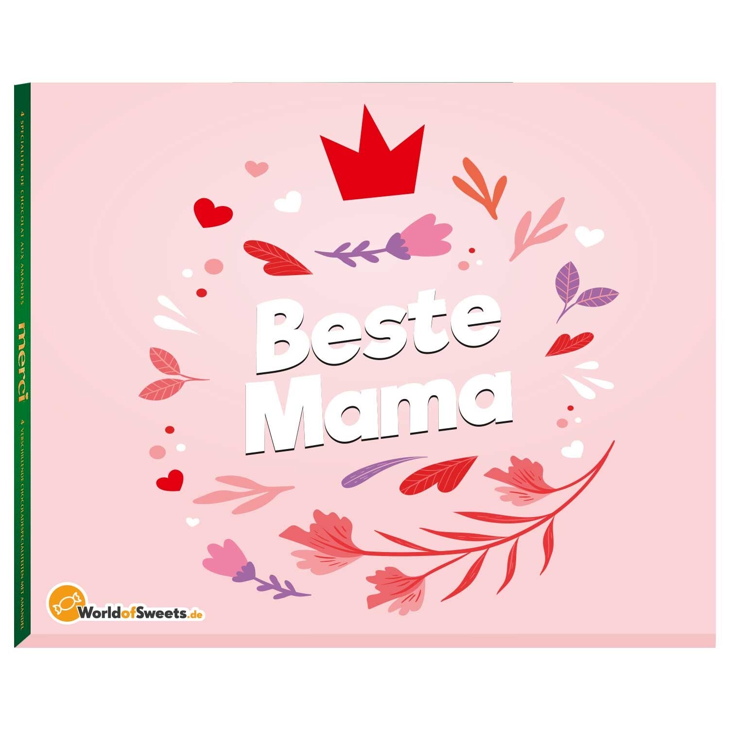 Met Beste Mama' & merci Finest Selection Almond Crunchy Variety bezorg je een glimlach op Moederdag. In de zorgvuldig vormgegeven geschenkverpakking ontdekt u talrijke lekkernijen in 4 verschillende varianten. Melkchocolade, pure roomchocolade en witte chocolade bevatten knapperige amandelstukjes die bij elke hap voor een nieuwe knapperige lekkernij zorgen. Naast "Almond Milk Crisp", "White Almond Crisp" en "Tart Cream Almond" valt ook "Fine Whole Milk Torrone" op door zijn milde honing-nougatsmaak.