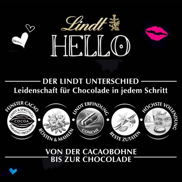 Leuk om je te feliciteren! Ontdek de opwindende nieuwe combinatie van onweerstaanbaar zachte Alpenmelkchocolade, verleidelijke room en knapperige stukjes koek! Lindt Hello Cookies & Cream is een eerbetoon aan de rijke “superkoek” met dat bijzondere iets. Daarom zeggen wij vol vertrouwen: "Ik maak je buikje lekker".