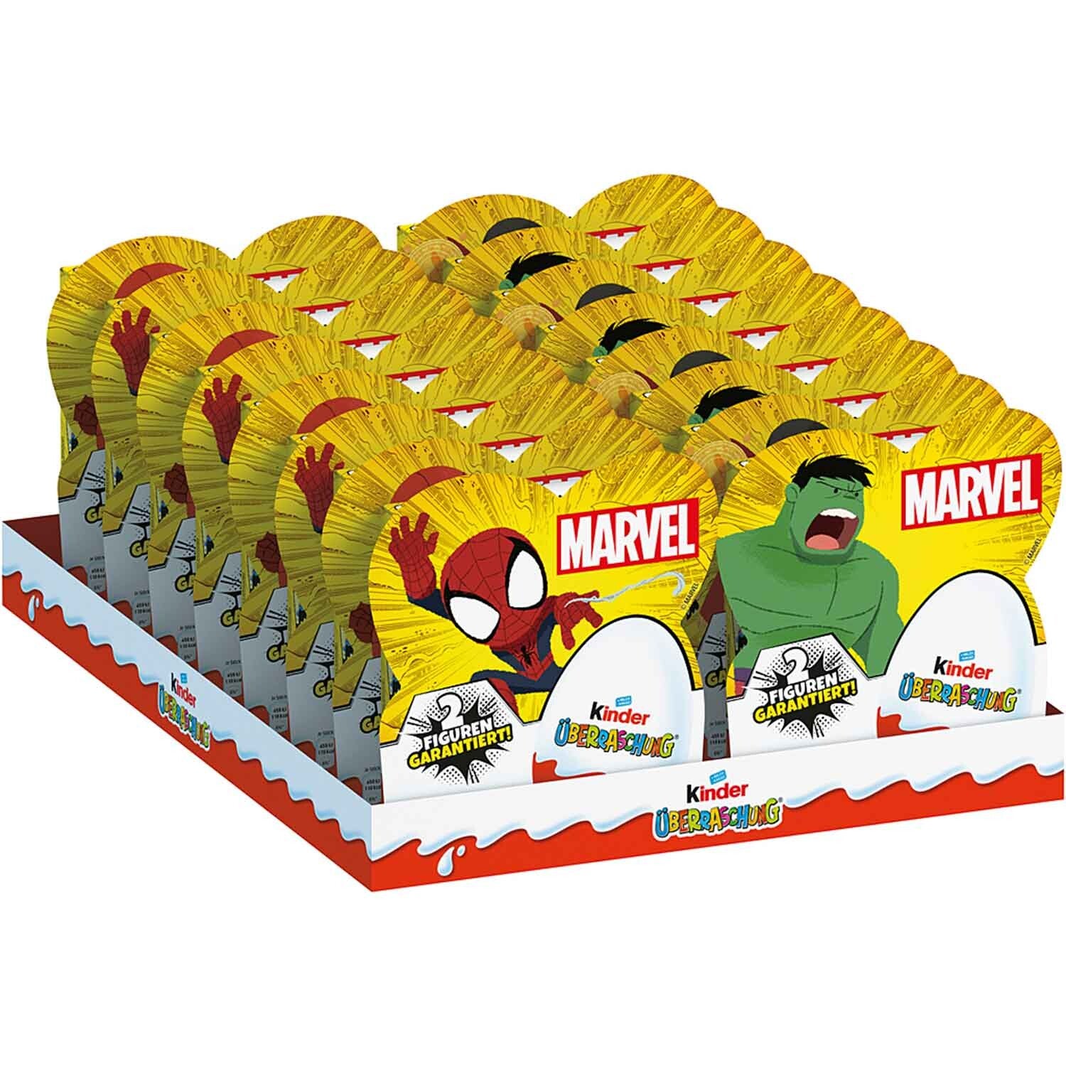 Limited Edition: 4 chocolade-eieren met minstens 2 van de 8 verzamelfiguren van "Marvel" en andere geweldige verrassingen.