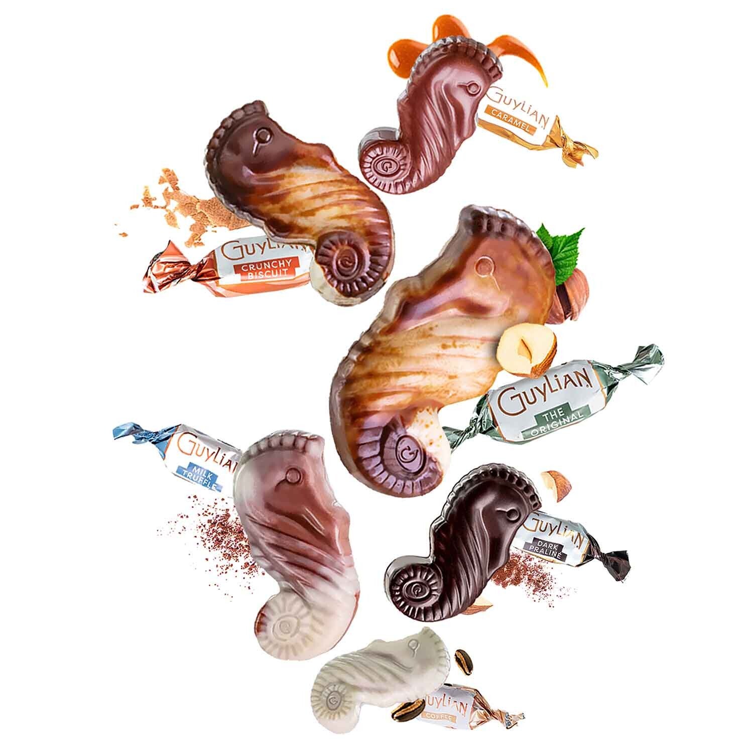 Verwenmomenten met 6 delicatessen. Echte fijnproevers komen aan hun trekken met het voortreffelijke GuyLian Temptations 6 Flavors Assortiment. Deze heerlijke Belgische chocoladepralines, verkrijgbaar in 6 verschillende varianten, zullen het hart van elke chocoladeliefhebber zeker doen smelten. Geleverd in een grote geschenkdoos, vormen ze een weelderig cadeau voor veeleisende zoetekauwen.